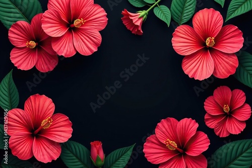 Bold, vibrant hibiscus pattern on a black background, seamless, colorful