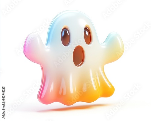 Boldly outlined 3D ghost icon for Halloween in bright cartoon style.