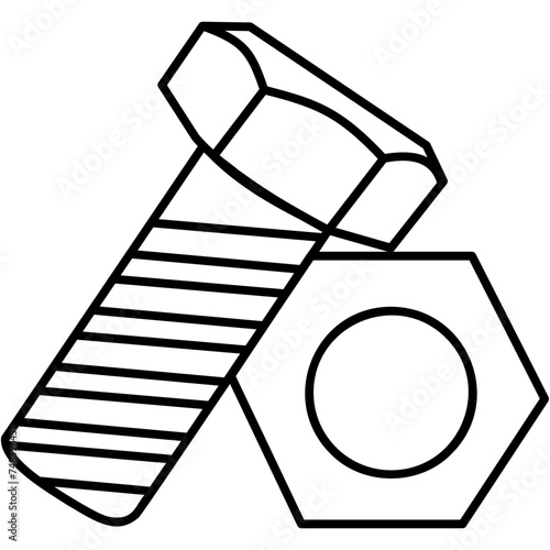 bolt, fastener, construction, metal, screw, nut, join, fix, bricolage, work, sticker, illustration, icon, outline, line
