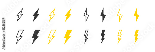 bolt, lightning, thunder, vector, icon, electric, flash, set, power, yellow, storm, thunderbolt, signs, light, arrow, illustration, symbol, flat, speed, logotype, shock, energy, isolated, charge, shape, graphic, abstract, danger, cartoon, strike, volt, lightening, immediately, thunderstorm, mark, recharge, speedy, blitz, black, fast, cloud, simple, faster, concept, warning, design