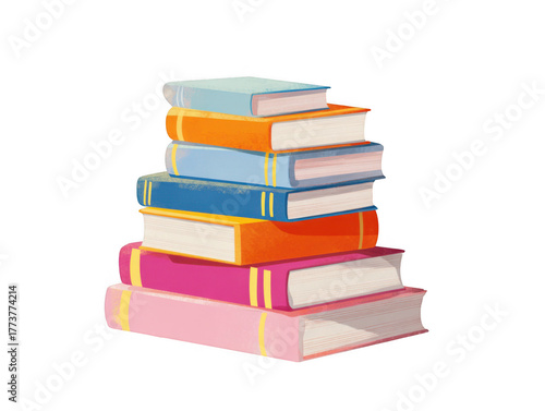 book, stack, pile, education, reading, cognition, library, learning, literature, illustration, school, study, colourful, bookshop, textbook, university, college, graphic, isolated, white background, pink, orange, blue, story, publication, research, wisdom