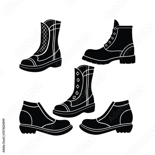 boot, illustration, vector, shoe, cut-out, no people, fashion, black-and-white, comfortable, horizontal, color image, design element, foot, leather, cartoon, clothing, symbol, white background, human foot, caricature, clip art, cowboy, boot, shoe, footwear, black, pair, winter, isolated, brown, object, clothes, rubber, woman, new, elegance, military, wear, style, closeup, heel