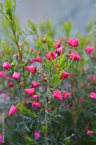 Boronia heterophylla lipstick - Heidepflanze blüht rosa im Pflanztopf - Boronie