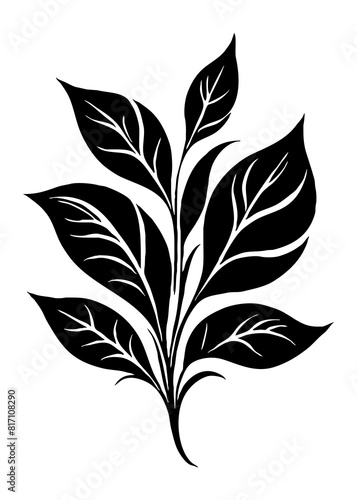 Botanical black and white pattern. Abstract plant shapes. Minimalist illustration for printing on wall decorations, for use in graphics, for tattoos. Generated by Ai