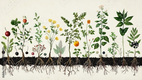 Botanical Illustration: A Diverse Array of Plants with Roots