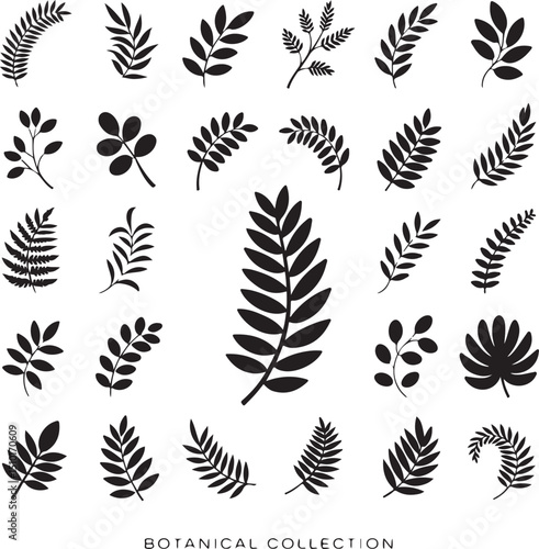 Botanical Leaf Silhouettes Set – Hand Drawn Black Foliage Clipart