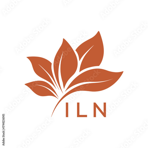 Botanical Nature Logo with Leaves in Brown, ILN Later Logo, Elegant Plant Emblem with Typography,