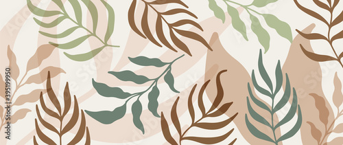 Botanical wall art vector background. Foliage line art drawing with abstract shape. Abstract Plant Art design for print, cover, wallpaper, Minimal and natural wall art.