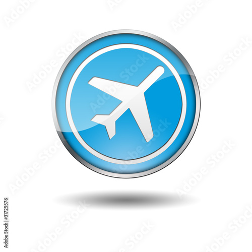 Boton azul borde metalico avion