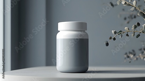 Bottle of pills positioned next to green plant highlighting health and wellness in a natural and calming environment
