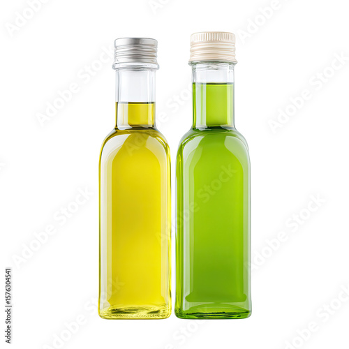 Bottled Olive Oil and Green Herb Oil in Glass Containers with Caps for Culinary and Cooking Use