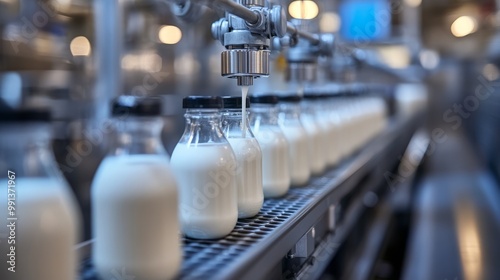 milk, bottle, production, dairy, conveyer, process, industry, liquid, manufacturing, equipment, hygiene, technology, filling, container, supply, quality, freshness, automation, glasses, cap, clean, flow, facility, assembly, workspace, safety, efficiency, agriculture, nourishment, health, cold, storage, transport, local, farm, organic, pasteurization, distribution, service, standard, machinery, system, resource, workflow, setup