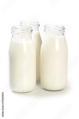 Bottles of milk on white background