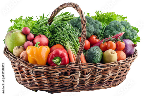 Bountiful basket of assorted fresh fruits, cut out - stock png.