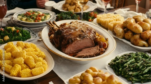 Bountiful Sunday Roast Feast with Traditional Family Dishes