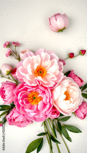 abstract, background, peony, flower, fruit, seasonal, spring, summer, freshness, detox, creative, stylish, elegance, composition, banner, dynamic, motion, beauty, colourful, vibrant, nature, botanical, design, art, decorative, modern, trendy, illustration