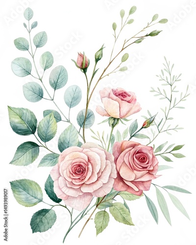 rose, flower, floral, bouquet, flower, love, pink, vector, rose, nubes, valentine, card, wedding, nature, vintage, spring, decoration, pattern, design, illustration, frame, blossom, beauty, art, leaf