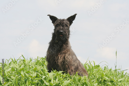 animal, dog, puppy, young, drover, ardennes, belgian, flock, surveillance, beef, seated, grass, dark, grey, black, pinstripe, brindle