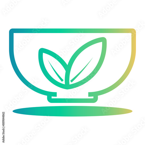 bowl, vegan, food, leaf, plant, based, symbol, icon, gradient, line, graphic, illustration