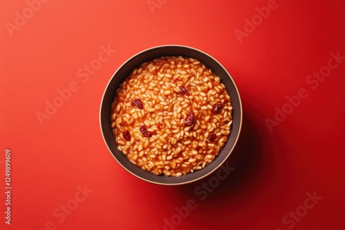 risotto, cranberry, rice, dish, bowl, food, cookery, italian, lunch, dinner, cooked, prepared, studio, shot, epicure, delicious, meal, gastronomy, nobody, background, red, culinary, photo, overhead, view, circle, round, presentation, isolated, single, serving, portion, grain, ingredient, plate, eatery, fresh, tasty, sweet, sour, aromatic, alimentary, fiber, healthy, texture, surface, simple, plain
