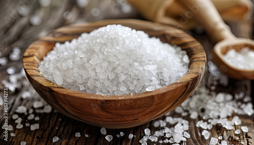 salt, bowl, ingredient, white, healthy, wooden, closeup, spoon, natural, spice, raw, organic, heap