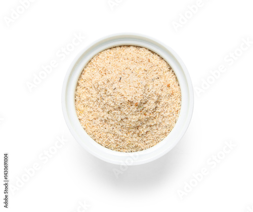 Bowl with psyllium husk powder on white background