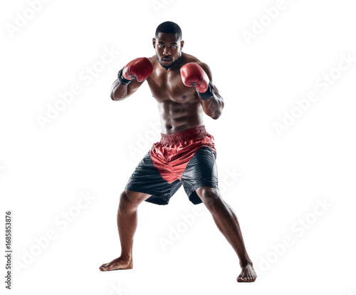 boxer, boxing, fighter, fighting, stance, athlete, muscular, strength, training, combat, physical exercise, fitness, exercise, sport, competition, professional, male, black, african american, determined, focused, serious, short, sweaty, body, powerful, punch, aggressive, active, dynamic, action, motion, energy, discipline, challenge, ready, warm up, arena, ring, knockout, fight, perspiring, champion, vigorous, courage, athletic, physical activity, barefoot beach