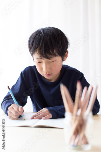 study, studying, boy, children, children, academic, student, thinking, thoughtful, learn, cute, education, home, homework, cognition, notebook, 1, crayons, class, people, person, little, portrait, school, sitting, white, work, writing, young, asian, japanese, background