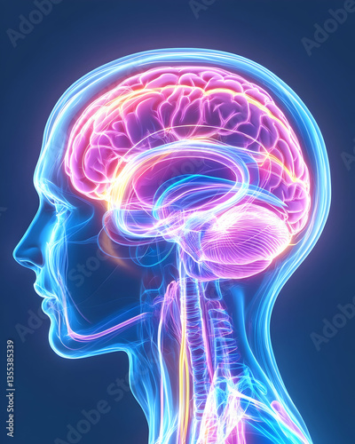brain, anatomy, human, nervous, system, medicals, health, science, body, image, illustration, neurology, nerve cell, nerve, spinal, cord, colourful, graphic, digital, art, model, physiology, three-dimensional, medicine, visual, educational, learning, information