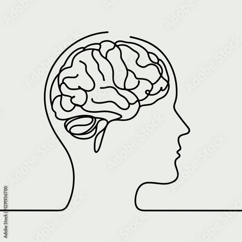 brain silhouette thin lines flat colors