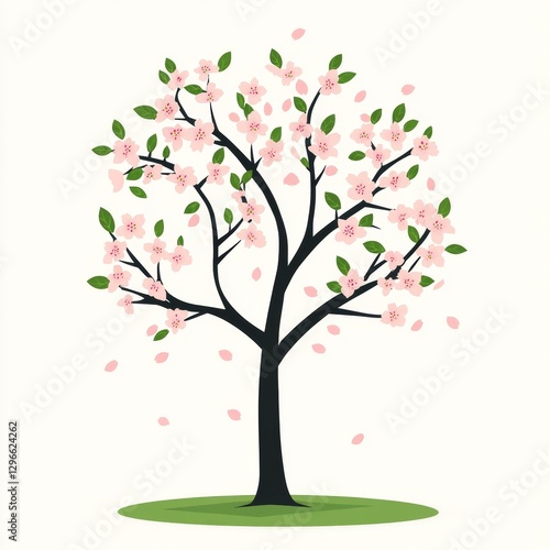 cherry blossom, cherry tree, pink flower, floral pattern, digital illustration, springtime, pink petals, japanese garden