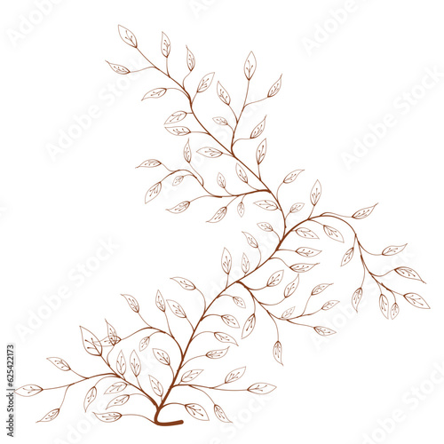branch with leaves vector. hand drawn of branch and leaf vector. branch with leaves. decorative branch and leaf ornament. Botanical abstract line vector.