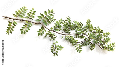 tree branch, leaf, green, foliage, tree, nature, plant, wood, twig, vegetation, growth, life, flora, botanical, environment, natural, organic, stem, sprig, shoot, outdoors, fresh, lush, vibrant, bright, white, background, simple, minimal, clean, studio, isolated, texture, pattern, shape, design, abstract, art, photo