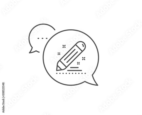 Brand contract line icon. Chat bubble design. Pencil sign. Edit social marketing report symbol. Outline concept. Thin line brand contract icon. Vector