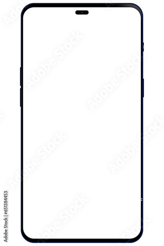 Brand new smartphone black color with white screen mockup. Front view of modern android multimedia smart phone.