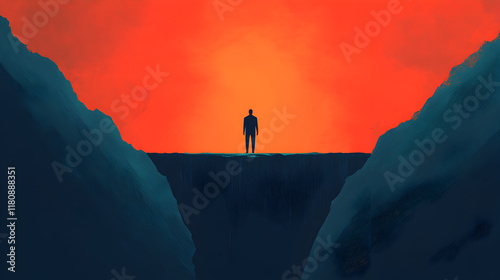 Braving the abyss a solitary figure on the edge of a chasm at dusk digital art surreal environment emotional perspective