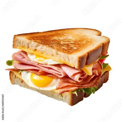 Breakfast sandwich, high resolution without background, suitable for advertising banners, image generated by Ai