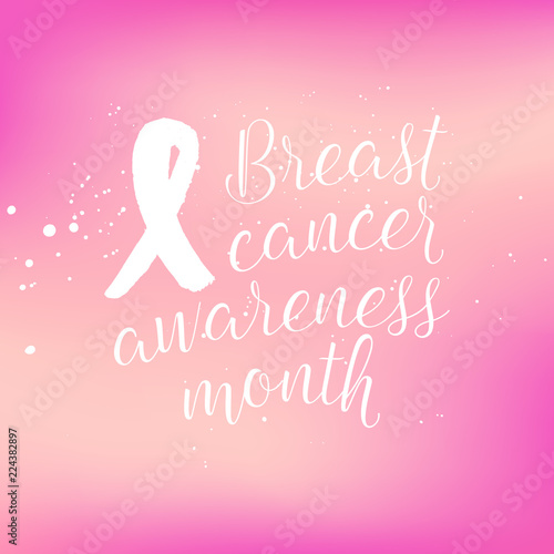 Breast Cancer Awareness Month ribbon, banner, card, element. Vector pink gradient text on white background