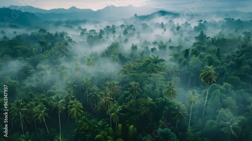 Breathtaking Aerial View of Lush Tropical Rainforest Canopy in Misty Atmosphere Highlighting Untouched Nature s Charm