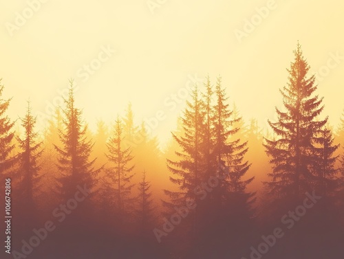 Breathtaking sunrise illuminates lush forest landscape with silhouetted pine trees