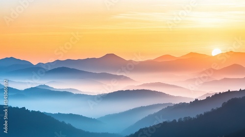Breathtaking Sunrise Over Misty Valley with Soft Warm Hues