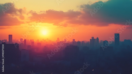 Breathtaking urban skyline silhouetted against a mesmerizing sunset sky showcasing the elegant architecture and skyscrapers of a vibrant metropolitan area