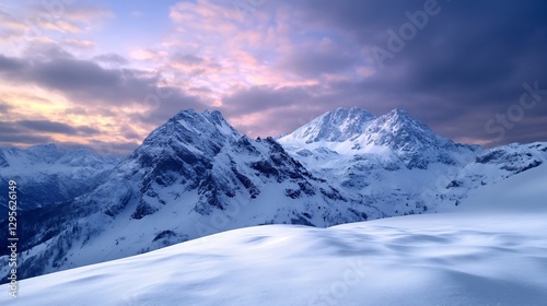 Breathtaking View of Snowy Mountains Under Dramatic Sunrise Sky with Colorful Clouds : Generative AI