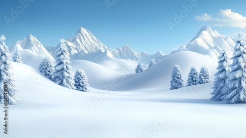 Breathtaking Winter Landscape Snow-Capped Mountains and Frosted Pines Under a Clear Blue Sky