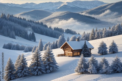 Breathtaking Winter Wonderland Snowy Hills with Frosted Pines for a Joyful Christmas Celebration