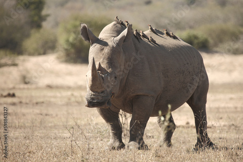 Breitmaulnashorn und Rotschnabel-Madenhacker / Square-lipped rhinoceros and Red-billed oxpecker / Ceratotherium simum et Buphagus erythrorhynchus