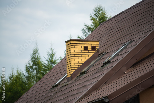 brick chimney on the roof of the house