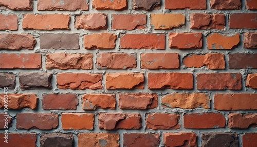 Brick texture, rustic appearance, close-up of weathered red bricks with mortar