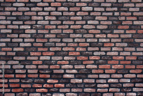 Brick wall background. Red, brown, black old bricks masonry backdrop. Stone texture for architecture and interior.