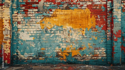 brick wall with a piece of street art that has been weathered and faded over time, adding a sense of nostalgia and history to the artwork.illustration
